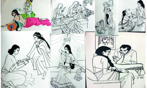 సుభద్ర దేవి :- నేను 1970లలో బాపూ బొమ్మలను చూసి కొన్ని చిత్రాలు వేసినవి.